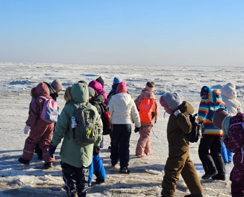 Wir, das sind aktuell rund 150 Schüler*innen und ca. 20 Erwachsene, die an der nördlichsten Schule Deutschlands den Lern- und Lebensraum drinnen wie draußen gemeinsam gestalten.
