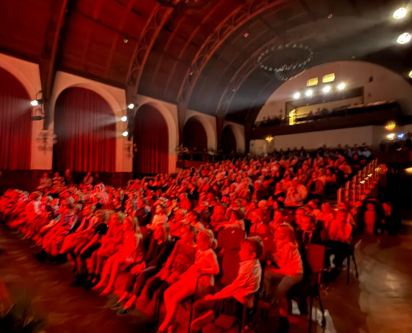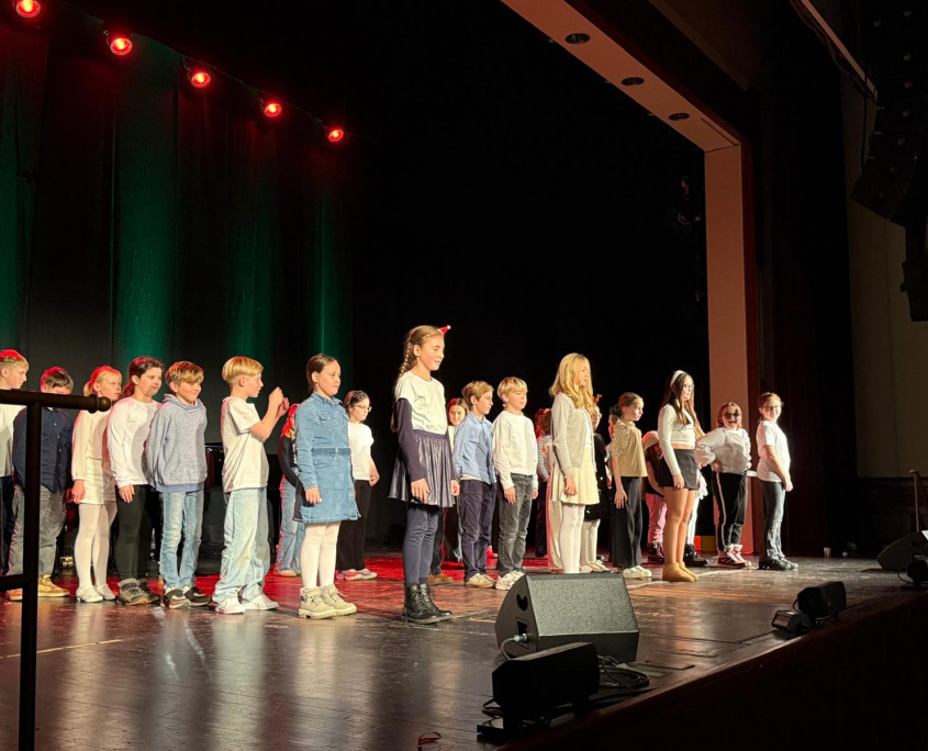 Wir lassen das Schuljahr mit unserer traditionellen Weihnachtsfeier ausklingen. Dieses Jahr durften wir im alten Kursaal in Westerland zu Gast sein. Begeisterte Gäste nahmen in den festlichen Reihen Platz und applaudierten den Kindern der Klassen 1-4 für ihre beachtlichen Darbietungen. Das kurzweilige Programm aus Theater und Gesang brachte viel Freude auf die Bühne und von dort aus in den Saal.